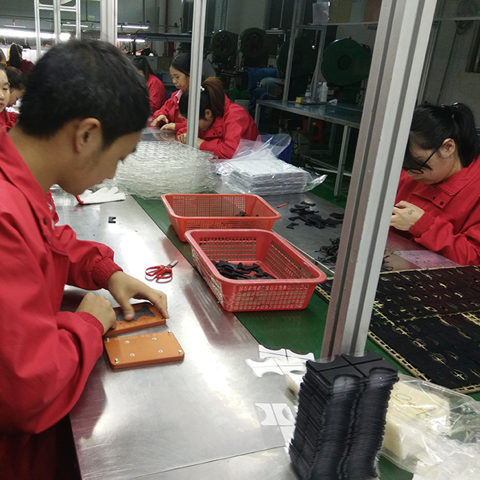 這款異形硅膠腳墊原料也是一款背3M膠硅膠制品,同樣是使用環(huán)保硅膠原材料,在成型模壓之后,由于表面沒有絲印工藝但是背部需要背膠,于是直接送到噴涂車間噴膠水,再拿到硅膠裝配車間拆邊,拆完邊裝配人員便根據(jù)治具手工背膠,廠內(nèi)人員200人量不是很大的時候我們?nèi)斯ぱb配效率更快,質(zhì)量更高,可以為客戶節(jié)約昂貴的機器成本。