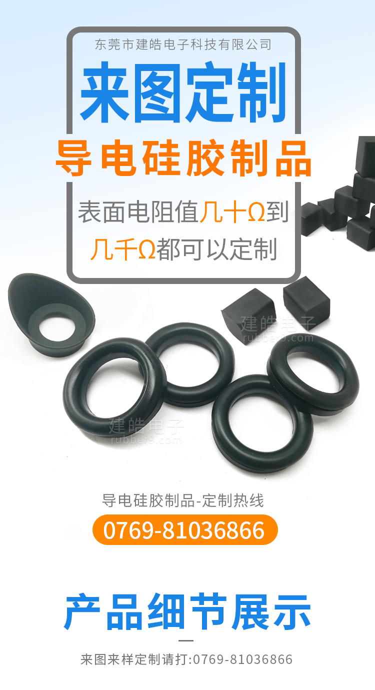 該款導(dǎo)電硅膠制品是用在一款美容儀器上的硅膠配件,該款導(dǎo)電電阻值為200歐姆以內(nèi),建皓電子可根據(jù)客戶要求來調(diào)整各項數(shù)據(jù)!