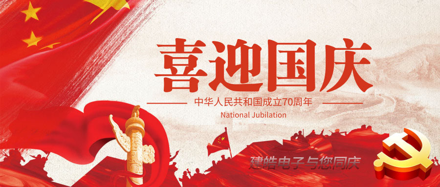 在舉國上下慶祝祖國70華誕之時,東莞市建皓電子科技有限公司在此祝所有兢兢業(yè)業(yè)的職工、關(guān)心支持我司發(fā)展的新老客戶、以及各界朋友國慶快樂!全家幸福,身體健康,萬事如意!